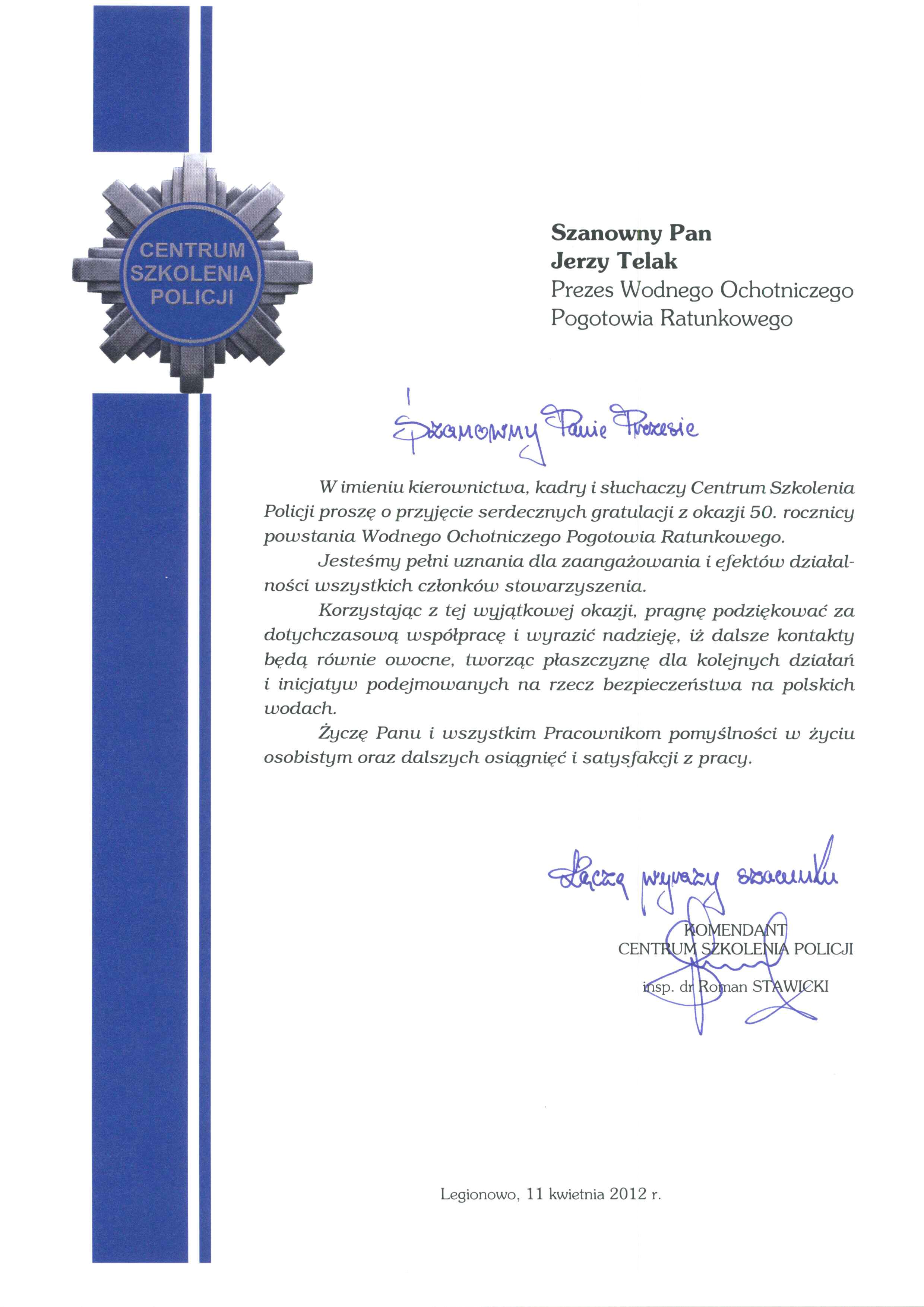 Komendant Centrum Szkolenia Policji insp. dr Roman Stawicki