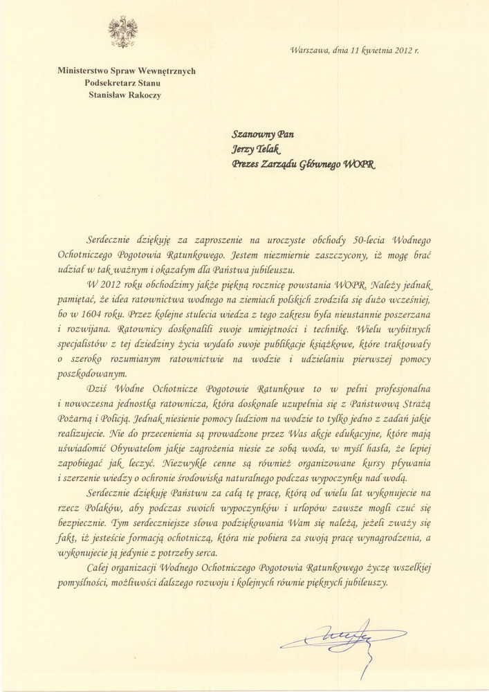 Podsekretarz Stanu w Ministerstwie Spraw Wewnętrznych Stanisław Rakoczy