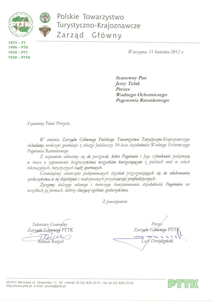 Polskie Towarzystwo Turystyczno-Krajoznawcze Sekretarz Generalny Roman Bargieł i Prezes Lech Drożdży