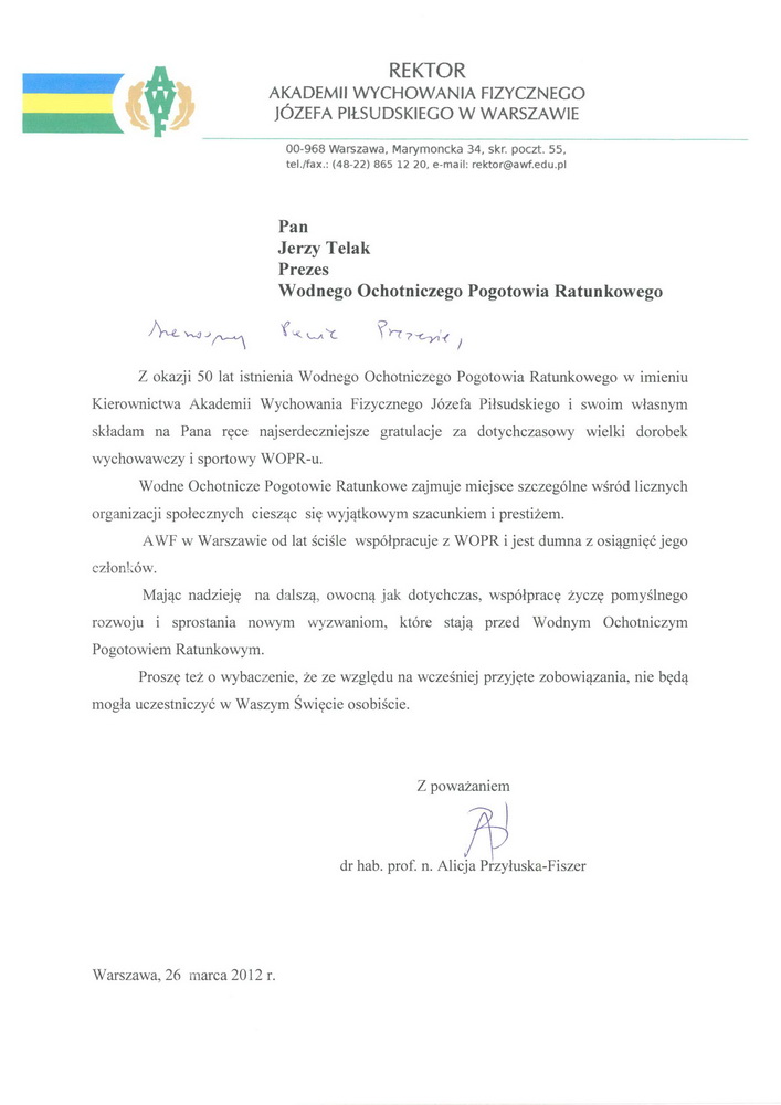 Rektor Akademii Wychowania Fizycznego Józefa Piłsudskiego w Warszawie dr hab. prof. n. Alicja Przyłu