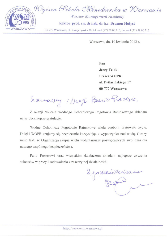 Rektor Wyższej Szkoły Menedżerskiej w Warszawie prof. zw. dr hab. dr h.c. Brunon Hołyst