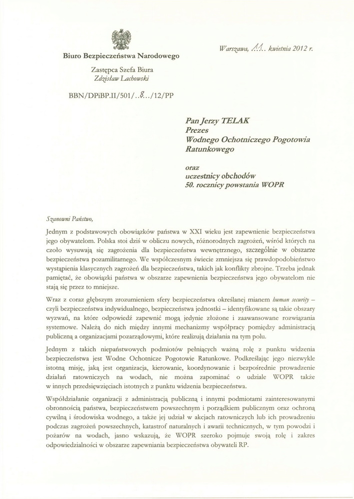 Zastępca Szefa Biura Bezpieczeństwa Narodowego Zdzisław Lachowski 1